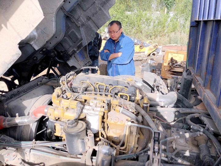 玉柴国六发动机高原标定团队负责人罗孟正在检查车辆相关信息
