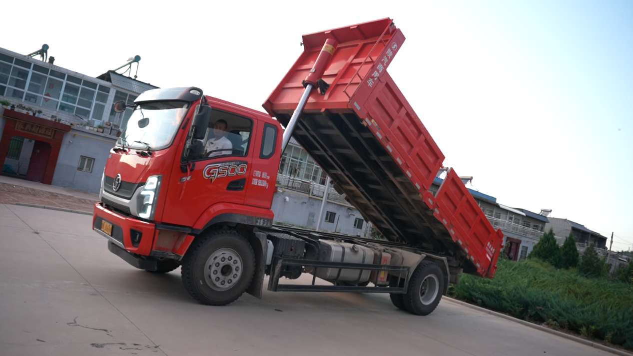 运输效率的保障不只是行驶性能,装卸环节的便利性与可靠性同样关键。覃师傅的德龍G500支持货厢侧板完全开启,便于叉车无障碍作业,整捆砖块可实现快速装卸;配备的液压举升系统运行稳定,能够迅速将货厢抬升至合适角度,既减少货物损耗,也显著压缩了装卸时间,为高效运输提供了又一重保障。