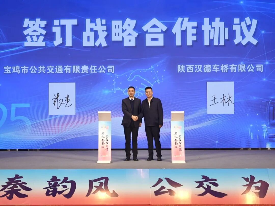 启动仪式上,宝鸡公交与汉德车桥签署了战略合作协议,共同推动公交技术研发与市场应用,助力城市公共交通系统升级及高质量发展。
