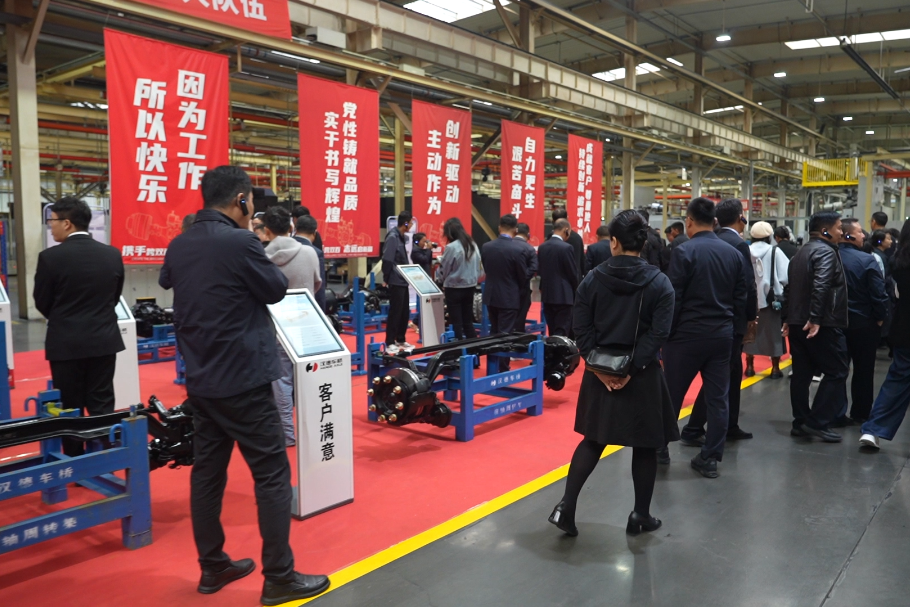 此外,活动还安排了实地参观环节。10月17日上午,观摩团一行专程探访了汉德车桥现代化生产基地,零距离感受了其行业领先的智能化产线。参观过程中,高度自动化的生产设备、精准协作的机器人、以及全程数字化的管理与质量追溯系统,给与会者留下了深刻印象。这条集成了柔性制造、大数据分析与智能物流的现代化产线,不仅是汉德车桥卓越制造能力和尖端技术实力的集中体现,更彰显了其作为行业技术领导者在智能制造领域的标杆地位。
