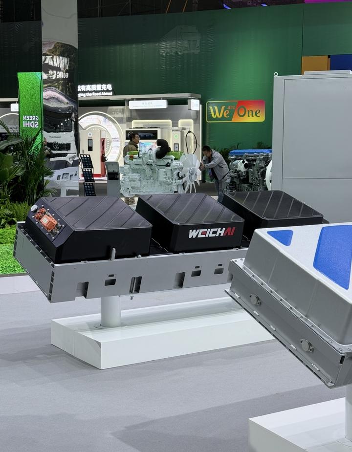 10月17日,在山东重工·潍柴动力全球合作伙伴大会上,潍柴新能源展台重磅展出了全系列商用车动力电池产品。