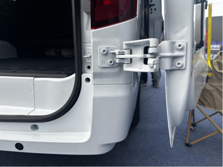 睿立达V8E在装卸便利性上同样做了细致考量。其采用的对开式尾门设计可实现270°最大开启角度,这在狭窄的仓库装卸环境中尤为实用。此外,车门两侧配置的磁吸装置,以及左侧的挂钩设计,都能在实际使用中提升装卸的便利性。