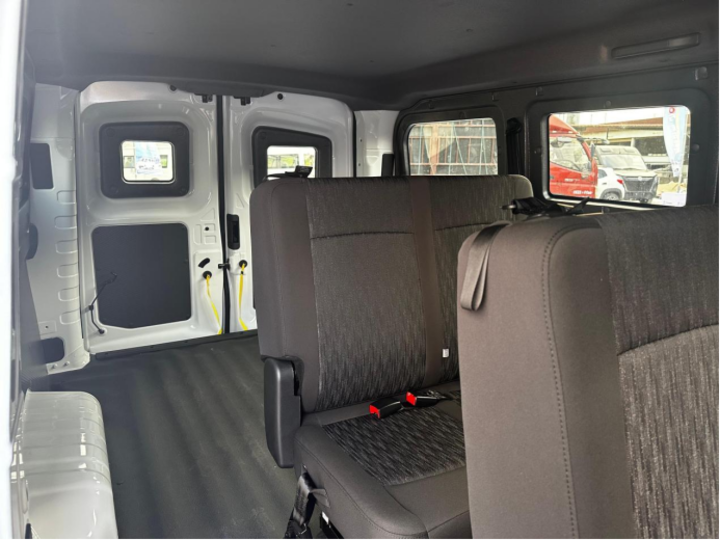 “明窗”设计是这款车的点睛之笔。与传统VAN车封闭的侧窗设计不同,大面积的明窗不仅增加了驾驶室的采光,更有效提升了乘客的乘坐体验。这对于走走停停城配场景来说,降低了压抑感和眩晕感,是从形式到功能的全面升级。