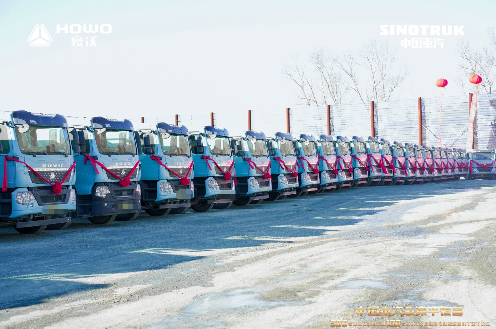 通过此次战略合作,必将显著提升客户核心竞争力,为物流行业绿色发展树立标杆。在全体嘉宾的共同见证下,双方代表庄严签署500台战略合作协议。纸页轻扬,笔墨凝重,这一仪式不仅标志着双方优势互补、强强联合的坚定决心,更正式开启了互利共赢、共拓市场的新征程,为深度合作奠定坚实基石。随着发车指令下达,100 台豪沃TX新能源牵引车依次鸣笛启程,气势恢宏的车队驶向物流运输一线,具象化展现了合作成果。