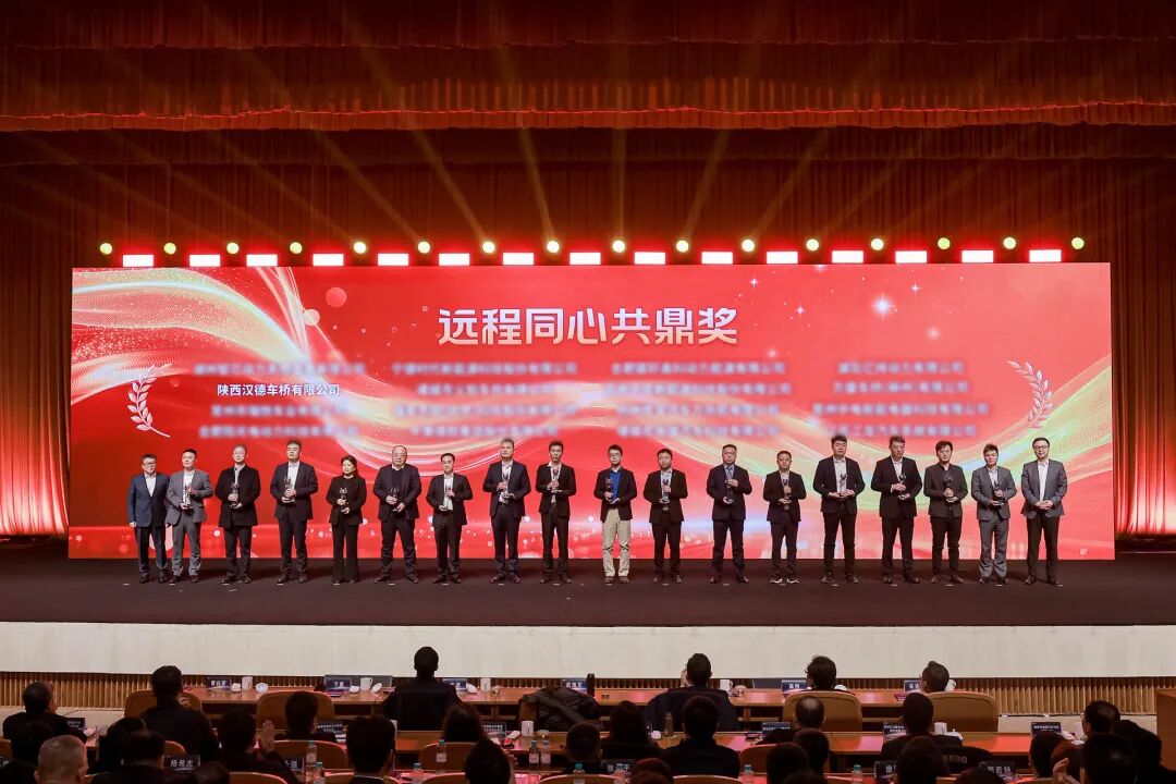 大会现场,远程新能源商用车集团发布了引领行业的“3011”战略蓝图,剑指2030年百万销量目标,并系统阐述了以3.0技术、产品、生态及全球化为核心的升级路径。此次荣获远程颁发的“远程同心共鼎奖”,对汉德车桥而言是一份珍贵的认可与激励。该奖项寓意着双方在合作中秉持初心、同心同德,犹如巨鼎之足,坚实稳固,共同支撑起新能源商用车发展的宏伟事业。