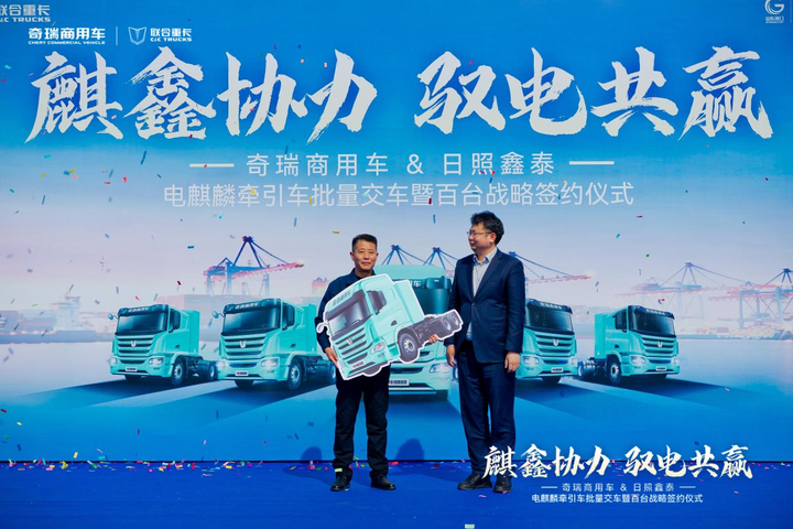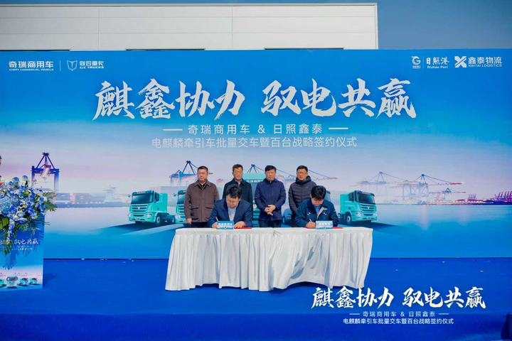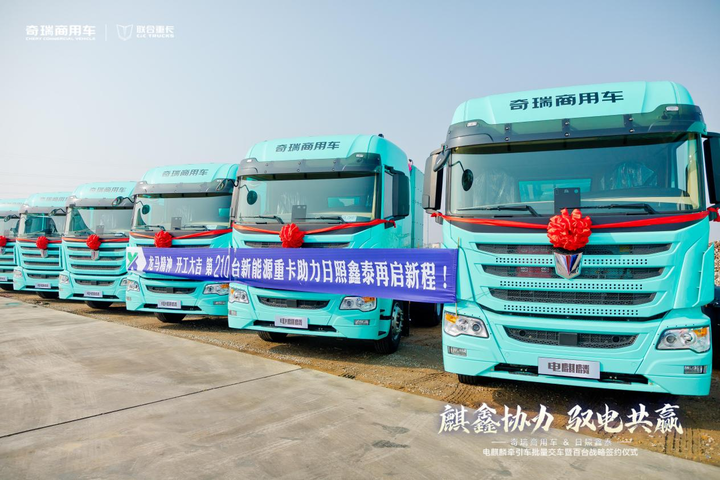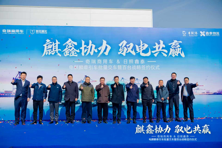2026年是十五五规划的开局之年,在高质量发展的时代主旋律下,港口集装箱物流的绿色低碳转型按下了加速键。2026年2月28日,以“麒鑫协力,驭电共赢”为主题的奇瑞商用车&日照鑫泰电麒麟牵引车批量交车暨百台战略签约仪式隆重举行。这不仅是一次简单的车辆交接,更是奇瑞商用车联合重卡在深耕港口物流场景、加速新能源战略落地过程中的又一关键里程碑。