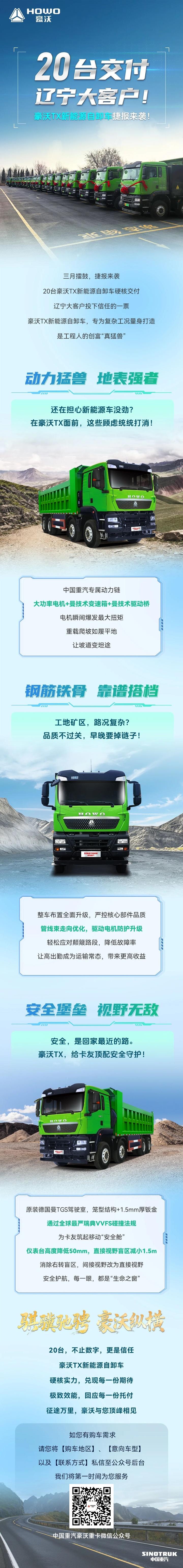 20台交付辽宁大客户!豪沃TX新能源自卸车捷报来袭!