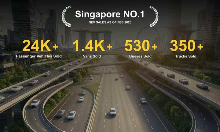 作为最早进入新加坡的中国新能源车企,比亚迪已深耕当地12年。凭借领先技术,比亚迪成为新加坡唯一实现新能源汽车全品类布局的中国车企,覆盖电动出租车、巴士、卡车、叉车、乘用车等。在商用车市场,比亚迪电动巴士在新加坡订单已超500台,市占率超60%,稳居行业第一;电动重卡更连续十年蝉联当地市占率冠军;在乘用车市场,2024至2025年,连续两年登顶新加坡汽车销量榜首。