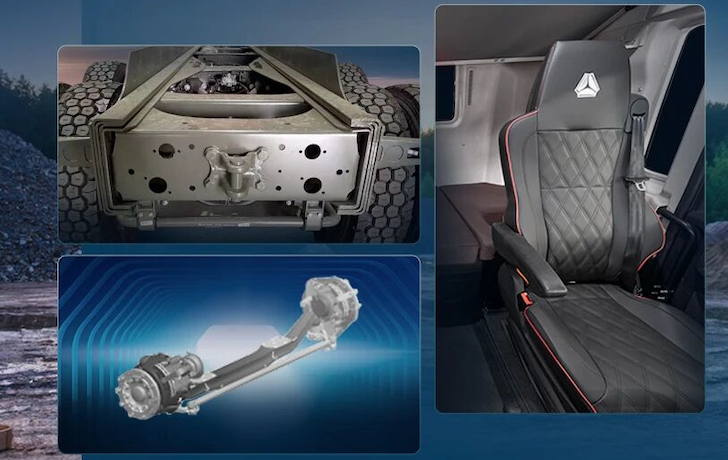 工地坑洼路、碎石坡是工程运输的常态,传统自卸车减震性能不足,车辆行驶中颠簸晃动明显,卡友满载跑一天,往往腰酸背痛、身心俱疲,长期高强度作业更易引发安全事故。
