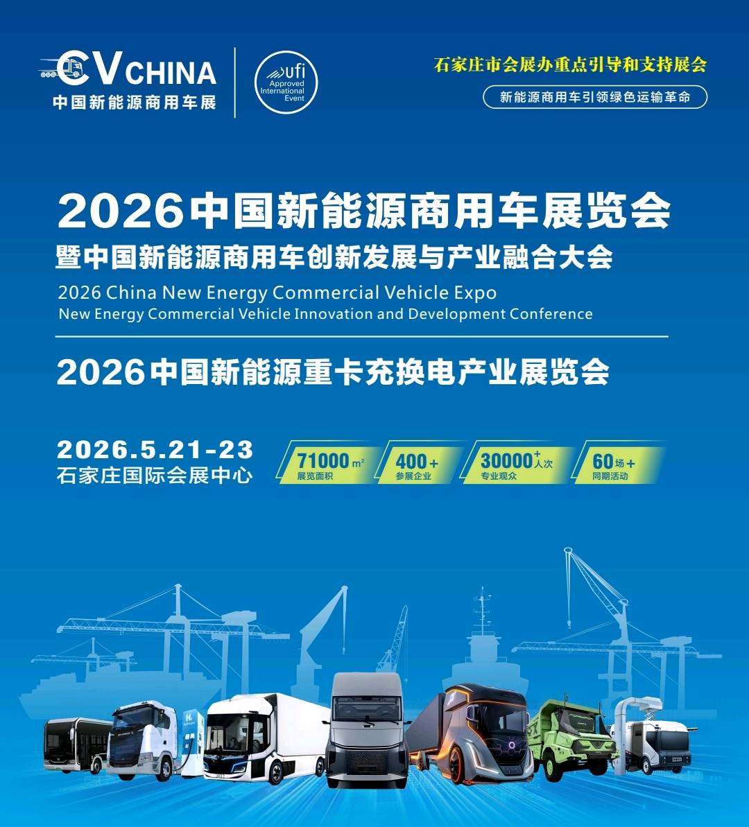 2026中国新能源商用车展览会暨新能源重卡充换电产业展览会将于2026年5月21日至5月23日在石家庄国际会展中心开幕